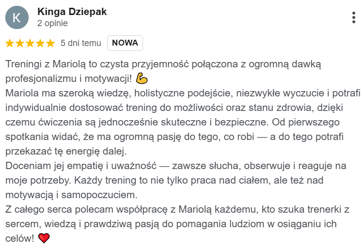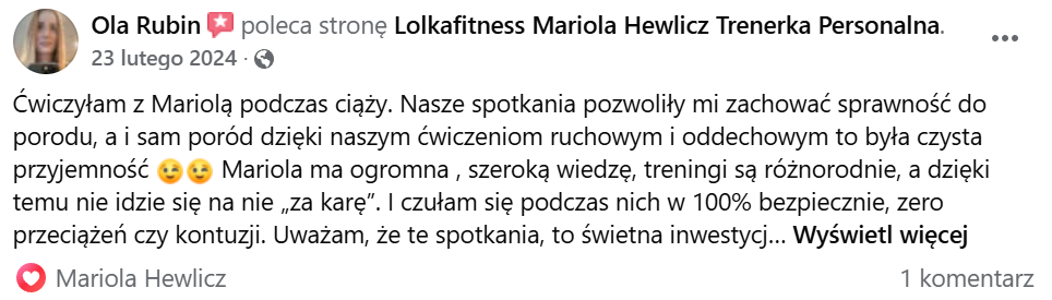 Jestem założycielką studia treningu personalnego: RE:Lab Studio Treningu personalnego – https://www.instagram.com/re_lab_studio/.